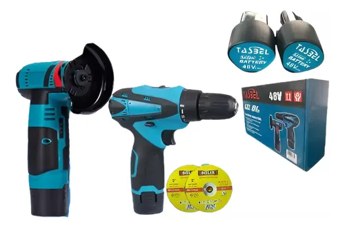 Mini Kit De Taladro Y Mini esmeril Inalambrico 48v cuenta con una amoladora angular tambien cuentas con un taladro atornillador inalambrico de 48V voltios , 2 baterias de litio, este kit es una herramienta versátil que permite realizar diferentes trabajos con un nivel profesional.