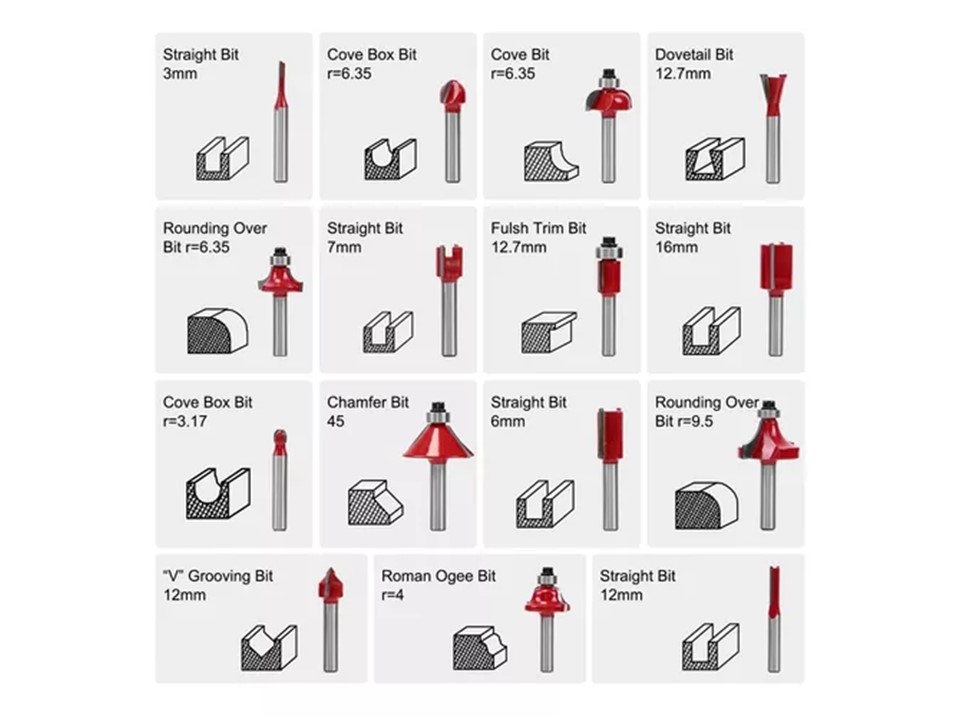 Set 15 Fresas Madera Toma 1/4 Router Fresa Carpintería Broca